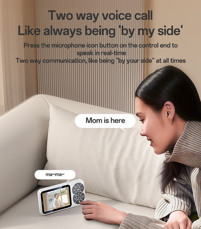 دارای میکروفون و اسپیکر داخلی جهت ارتباط صوتی دوطرفه و آرام کردن کودک از راه دور.