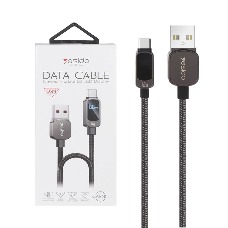 کابل شارژ یسیدو CA128C با طول 1.2 متر و پشتیبانی از شارژ سریع 66 وات، مجهز به نمایشگر LED برای نمایش وضعیت شارژ است. این کابل Type-C به Type-C برای استفاده روزمره و شارژ سریع دستگاههای مدرن طراحی شده است.