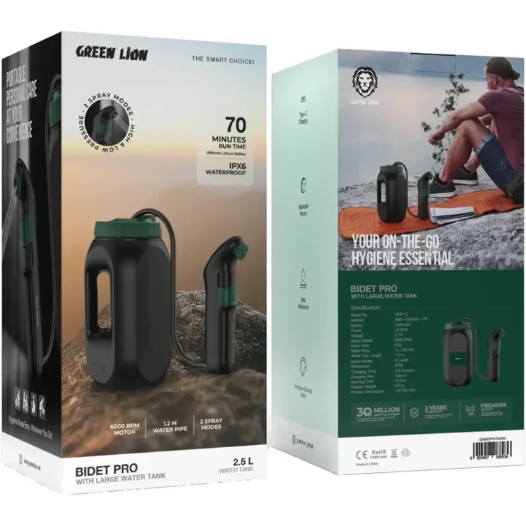Green Lion Bidet Pro Portable Travel Bidet 2.5L Water Tank IPX6 Waterproof Type-C